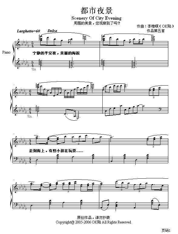 都市夜景免费钢琴谱_五线谱:OK贴 点击: 1000 图片可能经过缩放,手机长按或点开后长按保存,电脑鼠标右键保存.