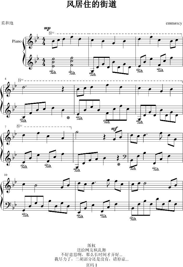 风居住的街道免费钢琴谱_五线谱:矶村由纪子 点击: 1000 图片可能经过缩放,手机长按或点开后长按保存,电脑鼠标右键保存.