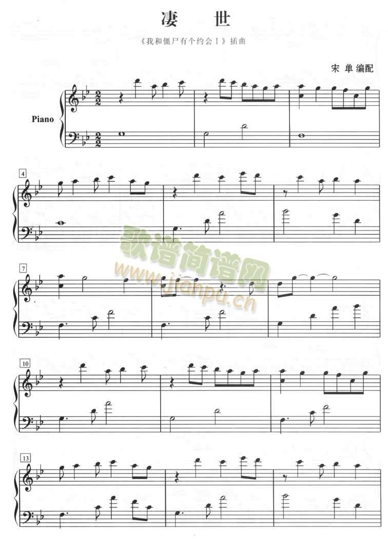 凄世-我和僵尸有个约会I(钢琴五线谱)免费钢琴谱_五线谱:钢琴演奏乐谱 点击: 1000 图片可能经过缩放,手机长按或点开后长按保存,电脑鼠标右键保存.