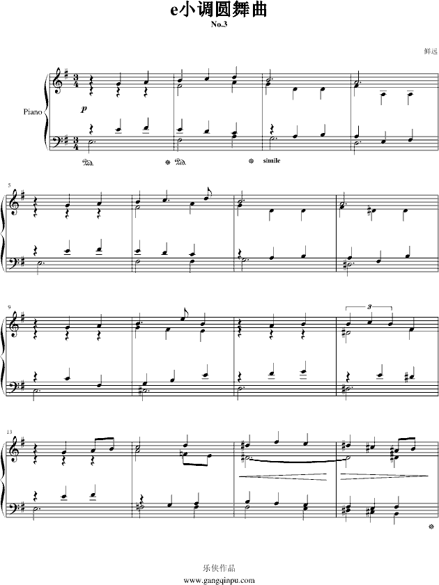 e小调圆舞曲-钢琴谱(钢琴曲)-乐侠免费钢琴谱_五线谱: 点击: 1000 图片可能经过缩放,手机长按或点开后长按保存,电脑鼠标右键保存.