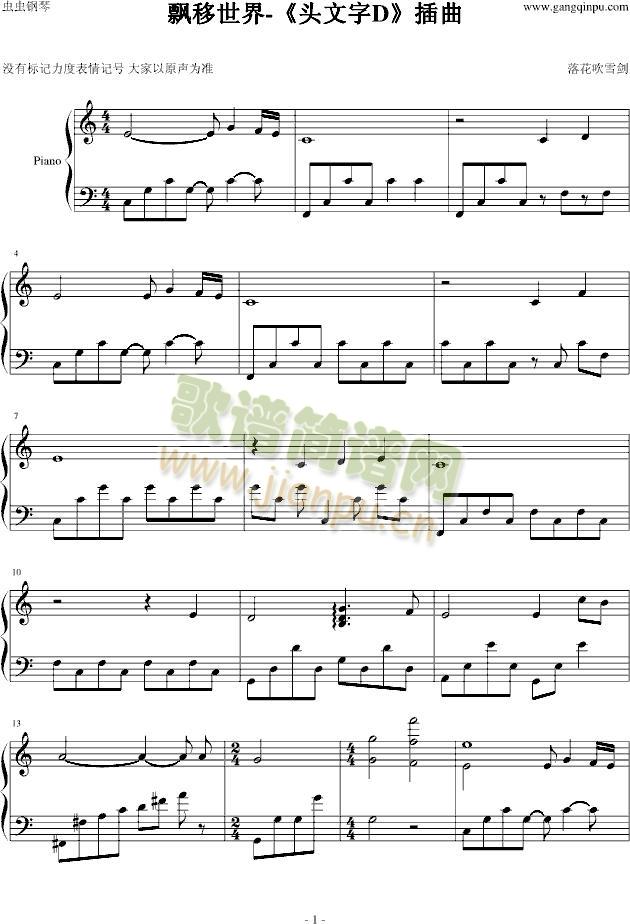 飘移世界免费钢琴谱_五线谱:周杰伦 点击: 1000 图片可能经过缩放,手机长按或点开后长按保存,电脑鼠标右键保存.