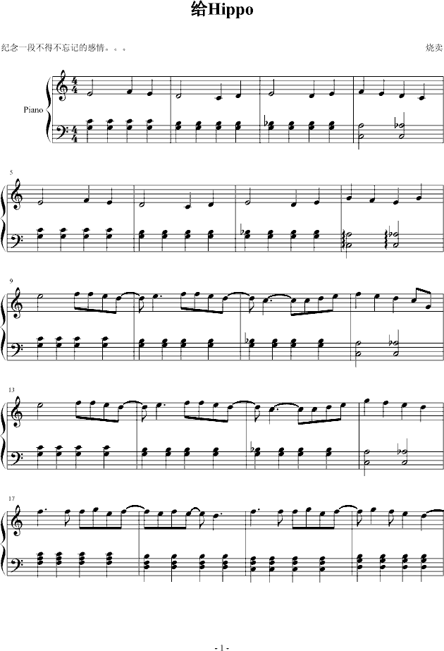 给Hippo免费钢琴谱_五线谱/词曲:烧卖烧卖点击: 1000 图片可能经过缩放,手机长按或点开后长按保存,电脑鼠标右键保存.
