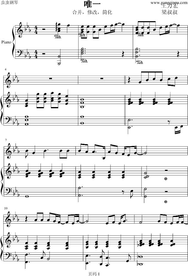 唯一(合并。修改。简化)-钢琴谱(钢琴曲)-王力宏免费钢琴谱_五线谱: 点击: 1000 图片可能经过缩放,手机长按或点开后长按保存,电脑鼠标右键保存.